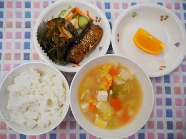 ・さんまのかば焼き ・浅漬け(かぶ・人参・きゅうり)