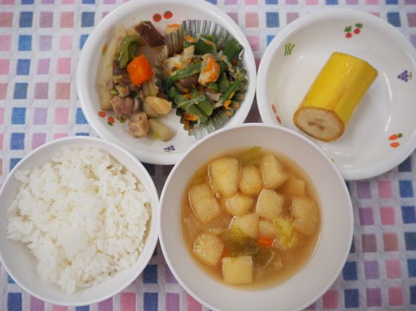 ・みそ汁(里芋・なめこ・三つ葉・厚揚げ)