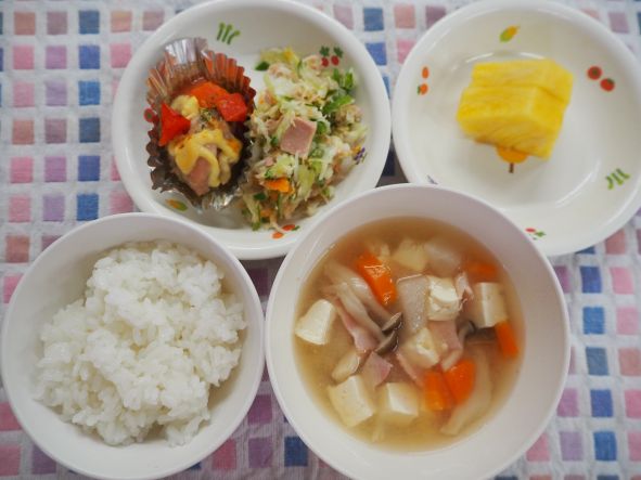 ・みそ汁(かぶ・ベーコン・絹ごし豆腐・かぶの葉)