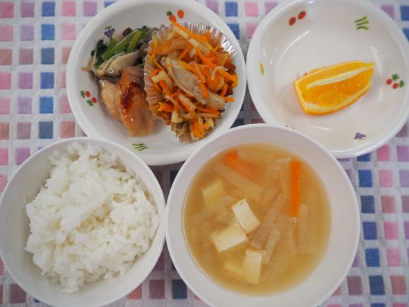・みそ汁(里芋・なめこ・三つ葉・厚揚げ)